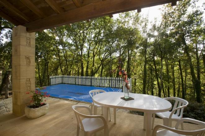 Ce gîte de 75 m² possède un chauffage électrique, une terrasse couverte, une piscine privative (ouverte de mai à octobre).